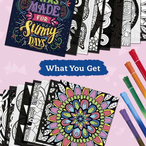 This activity book contains 42-pages of instruction and inspiration, 18 sheets of stained-glass coloring paper, and 5 precision-tip markers to create works of art for your windows and walls. Color everything from cats to pineapples to flowers and watch in awe as your artwork catches the light!