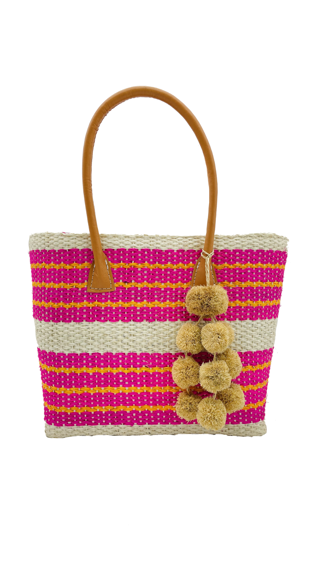 Shebobo Santa Cruz Two Tone Pinstripes Large Straw Tote Bag Natural with Brights