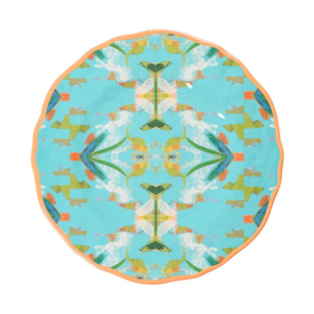 Laura Park melamine serve-ware, adorned with a charming scalloped trim, combines lightweight and shatterproof features without compromising style! Perfect for both relaxed meals and elegant event hosting.