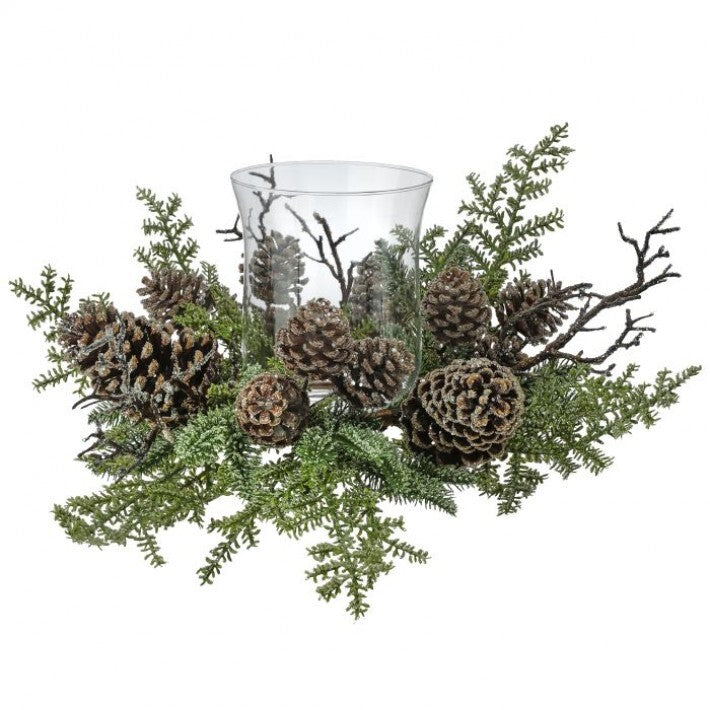 Iced Northwoods Evergreen Pinecone Hurricane Centerpiece