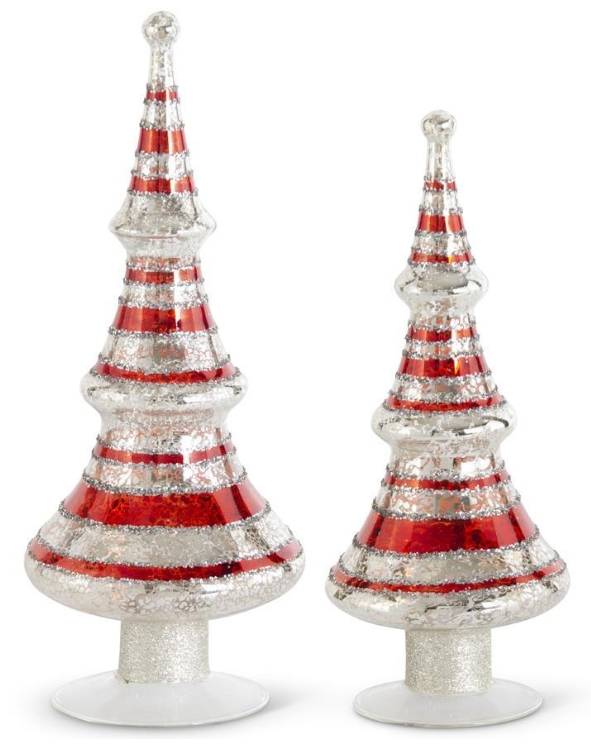 Red Glittered Striped Silver Mercury Glass LED Tree with Timer