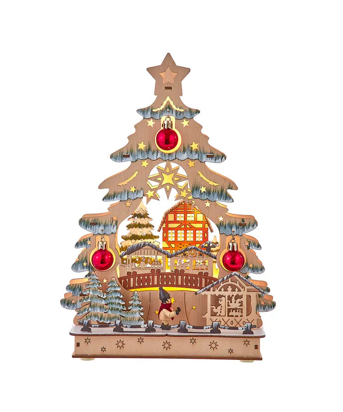 Kurt Adler 8.3" Battery Operated LED Lighted Tree with Village Scene Table Piece