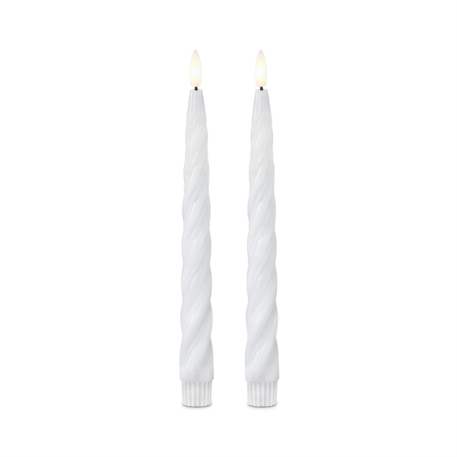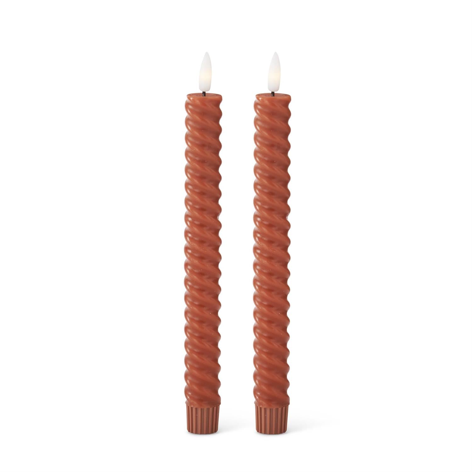 Warm up your space with these LED spiral taper candles, designed with a sculpted ribbed texture and realistic flickering flame. Their rich hue and flameless glow bring cozy sophistication to any table, mantel, or holiday display - no matches required.