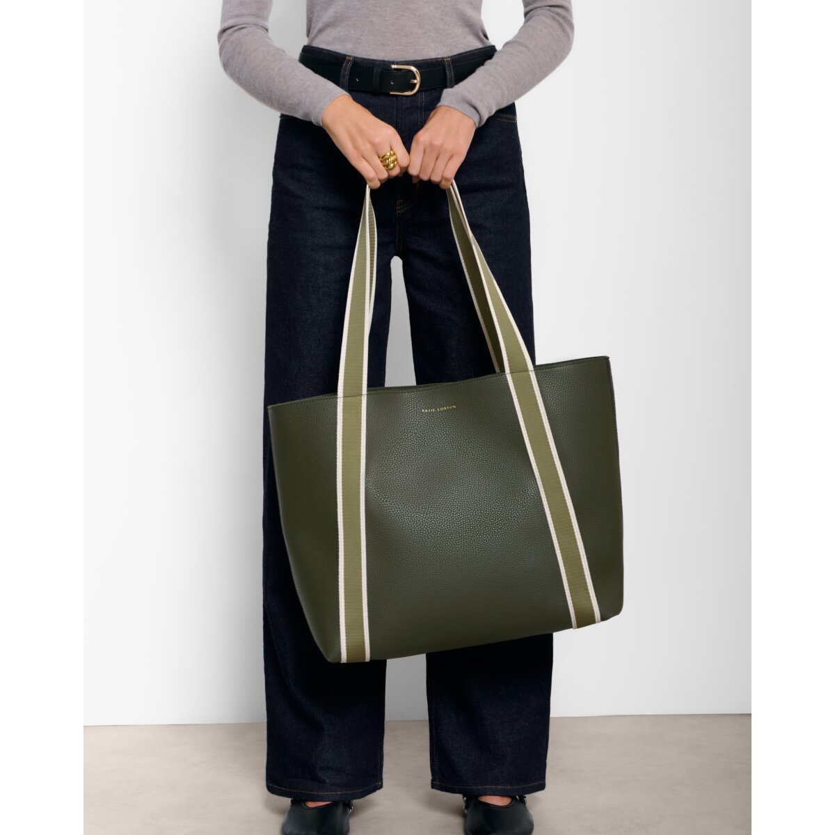 The Hallie Tote Bag showcases a patterned canvas shoulder strap, easy magnetic popper closure, and a protective suedette lining. Effortlessly stylish and generously spacious, this elevated shopper tote is designed to carry all your daily essentials, taking you from work commute to errand runs with ease.