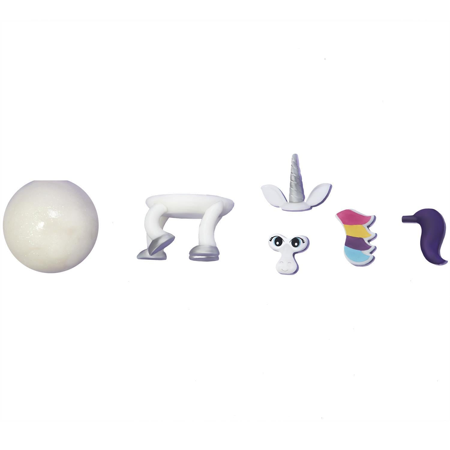 Build your unicorn and then watch her melt before your eyes! Repeat the process again and again for endless hours of fun. Once you're done, just put the parts back in the container and play again another day.