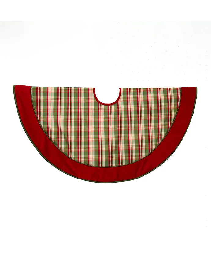 Kurt Adler 48" Red & Green Plaid Velvet Border Tree Skirt