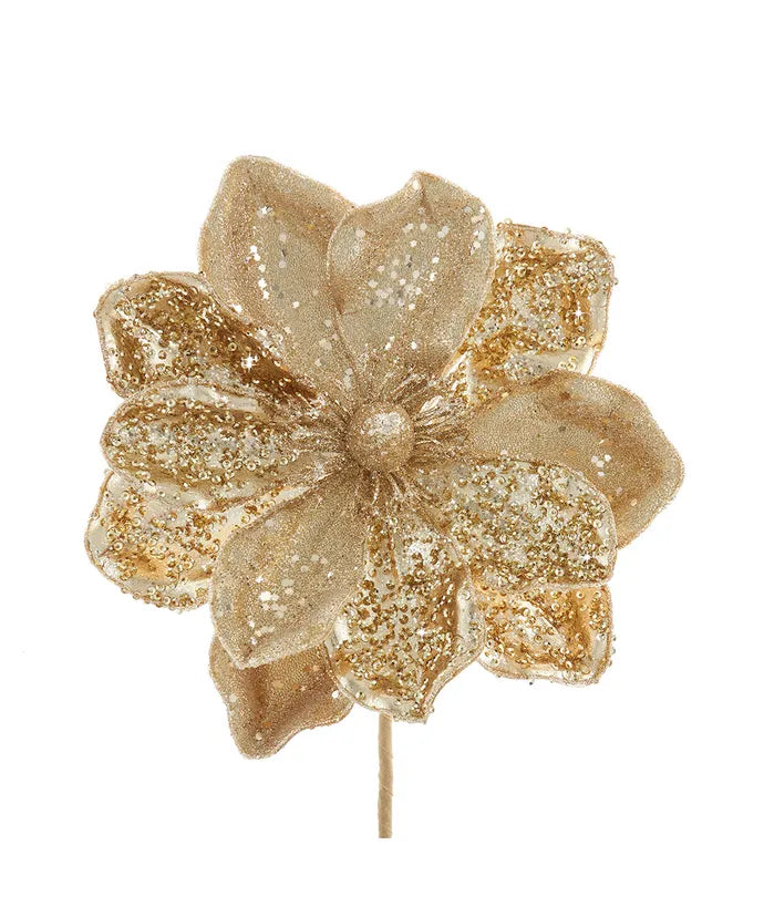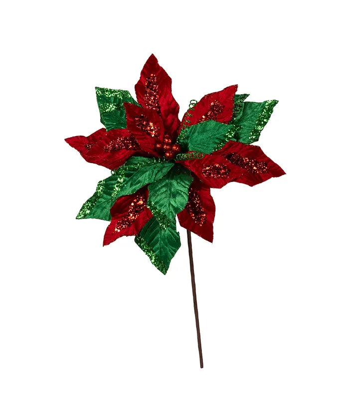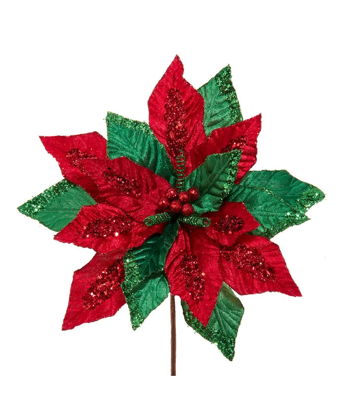 Kurt Adler Red & Green Velvet Poinsettia Pick