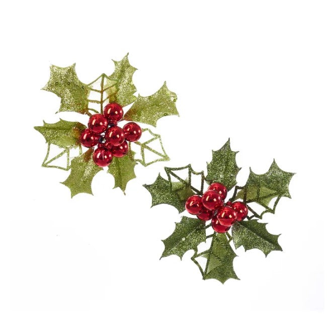 Kurt Adler Glitter Holly Leaves with Berry Ornament