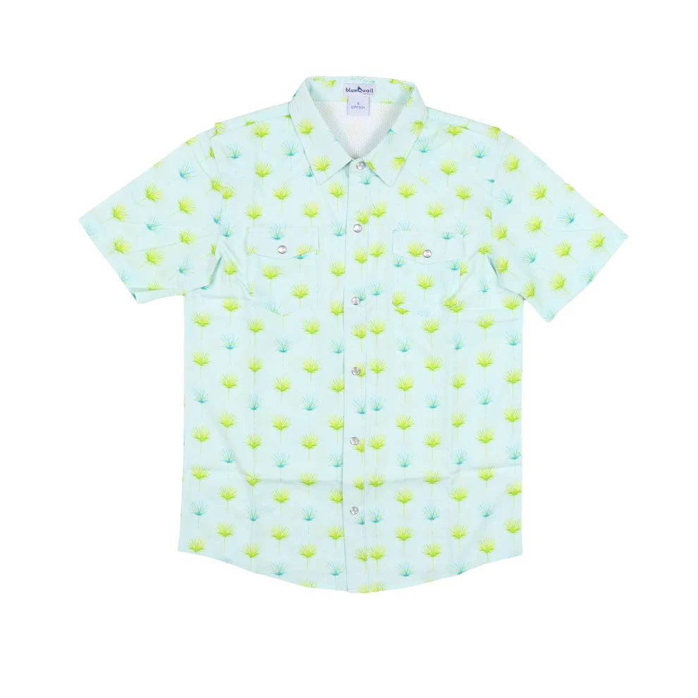 Bring a touch of the tropics to your western look with the Men’s Palm Leaves Pearl Snap Short Sleeve Shirt. Featuring a unique palm leaf print and classic pearl snap closure, this shirt combines laid-back style with rugged durability. Crafted from high-performance fabric, it’s built to keep you cool, comfortable, and sharp—whether you’re headed outdoors, traveling, or relaxing on the weekend.