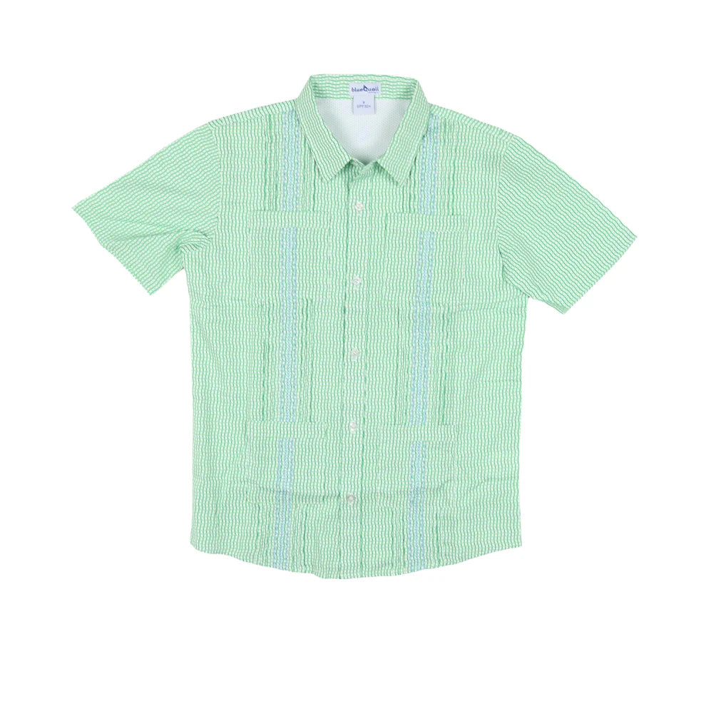 Blue Quail Men's Wave Check Guayabera Jade Apple