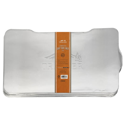 Make grill maintenance a breeze with Traeger Drip Tray Liners. Made of heat-proof aluminum, they are lightweight and disposable so you can clean up quick and Traeger on. Liners should rest fully on the grease pan and not cover any areas outside of the grease pan, as to not affect the temperature and performance of the grill.