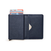 This Credit Card Holder is redefining the wallet. The RFID shield protects your cards from unwanted wireless communication. Sleek design features a lever for instant credit card access, fans out easy selection for up to 6 cards. Slim pocket for your business cards or money. Great for everyday use and be sure to bring it along your next trip.