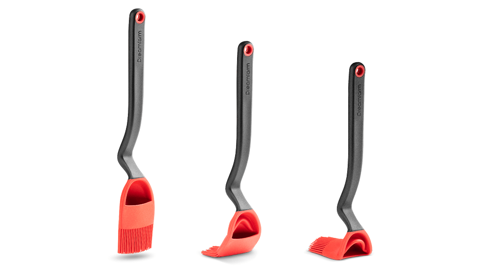 Brizzle is a silicone basting brush that bends to scoop up 1 tbsp of liquid (ahem – that’s the equivalent of 15 bristle dips) from hard-to-reach places, drizzles to baste, and sits up off your bench with no drips. Brizzle’s cup shaped head, folds back to fit into small spaces and scoops up 1tbsp of your baste without tilting your heavy baking dish or tray. The 4 holes inside Brizzle’s head control the release of your baste, oil, or egg wash onto its bristles, for fast and efficient basting. Brizzle’s 100 soft, silicone bristles (yes, we counted them) are non-stick safe, dishwasher safe, and heat resistant to 260°C / 500°F.