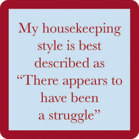 "My housekeeping style is best described as "There appears to have been a struggle""