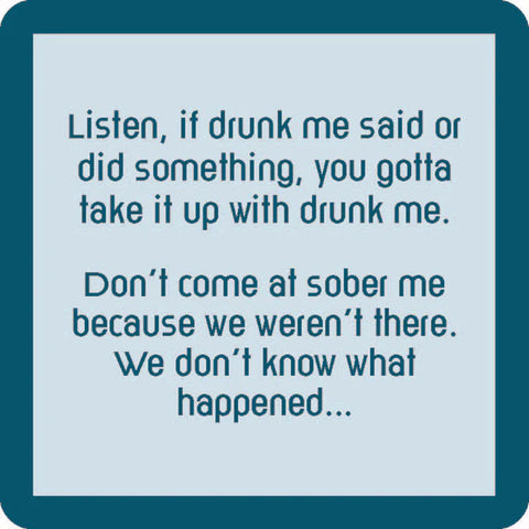 Drinks on Me Coaster Drunk Me