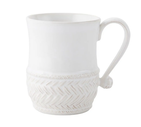 From the Le Panier Collection - For a morning cup of café au lait or steaming tea - after late-night feasting with friends - this mug suits masculine and feminine sensibilities equally. A basket-weave motif at the base lends a traditional air while a graceful handle is finished with a sailor's knot.