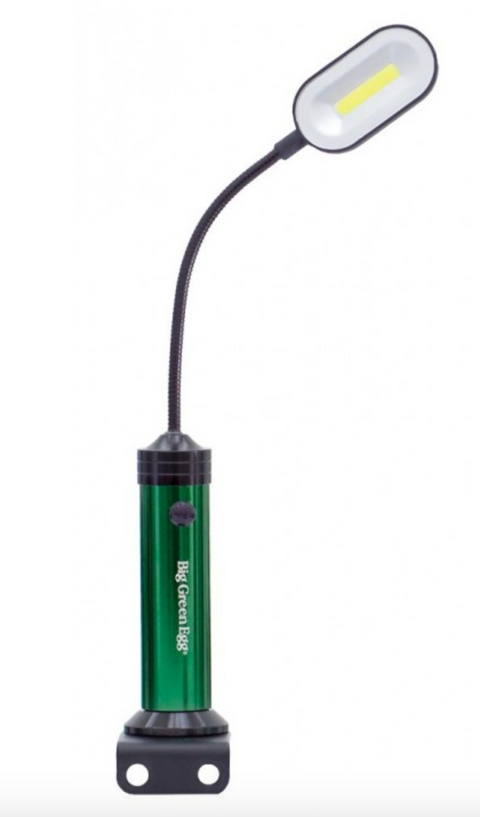 Lightbulb on the back deck burnt out?... and we all know that handling a flashlight and a spatula can be challenging. Well, now we have a simple yet effective solution for both grilling dilemmas. This high-intensity LED grill light from Big Green Egg has a flexible neck to focus hands-free lighting wherever you need it most. Featuring a strong magnetic base that connects to a handy mounting bracket – this EGGcessory is designed to easily connect the light to the EGG Band, Modular Nests, Islands and Tables giving you high-intensity LED light exactly where you need it.