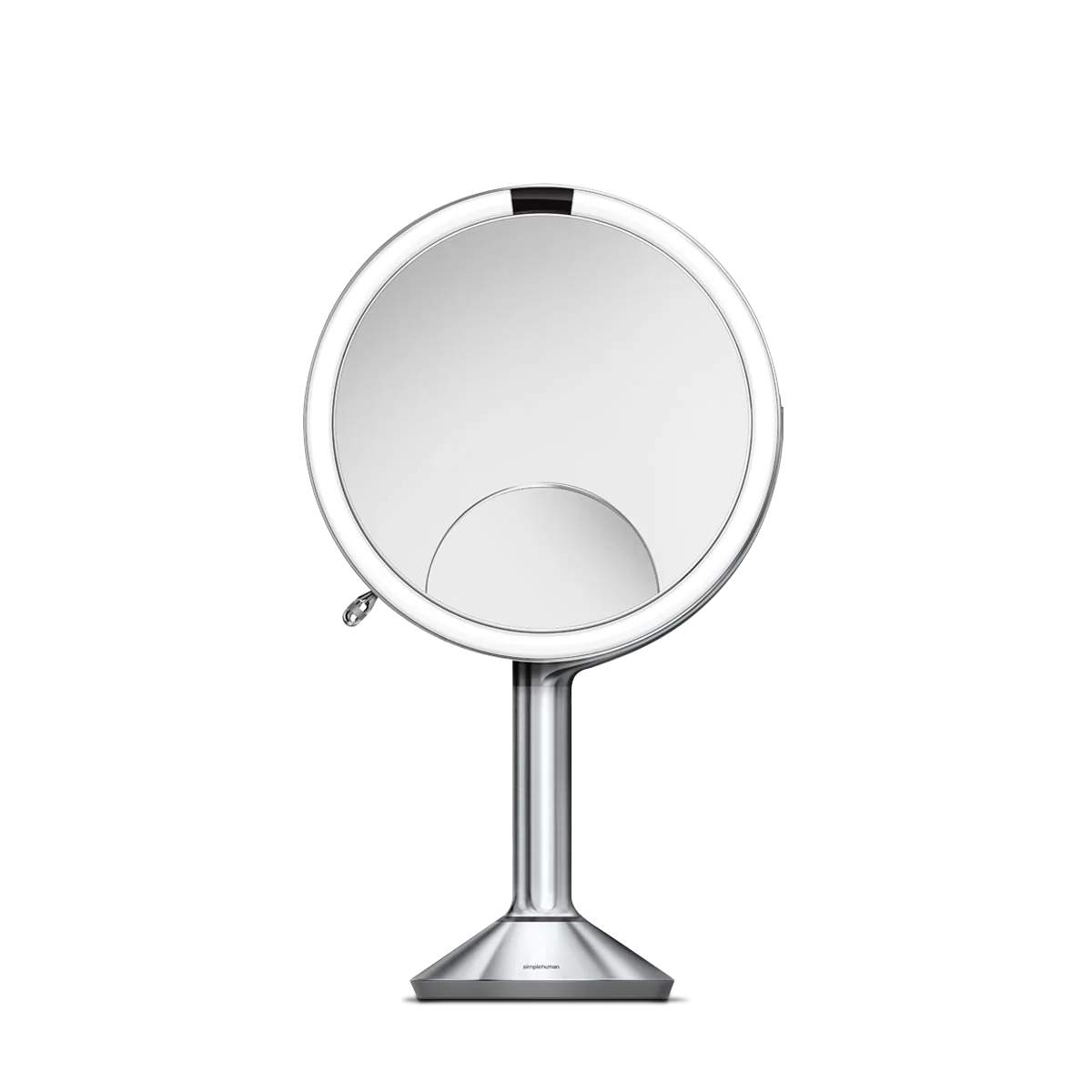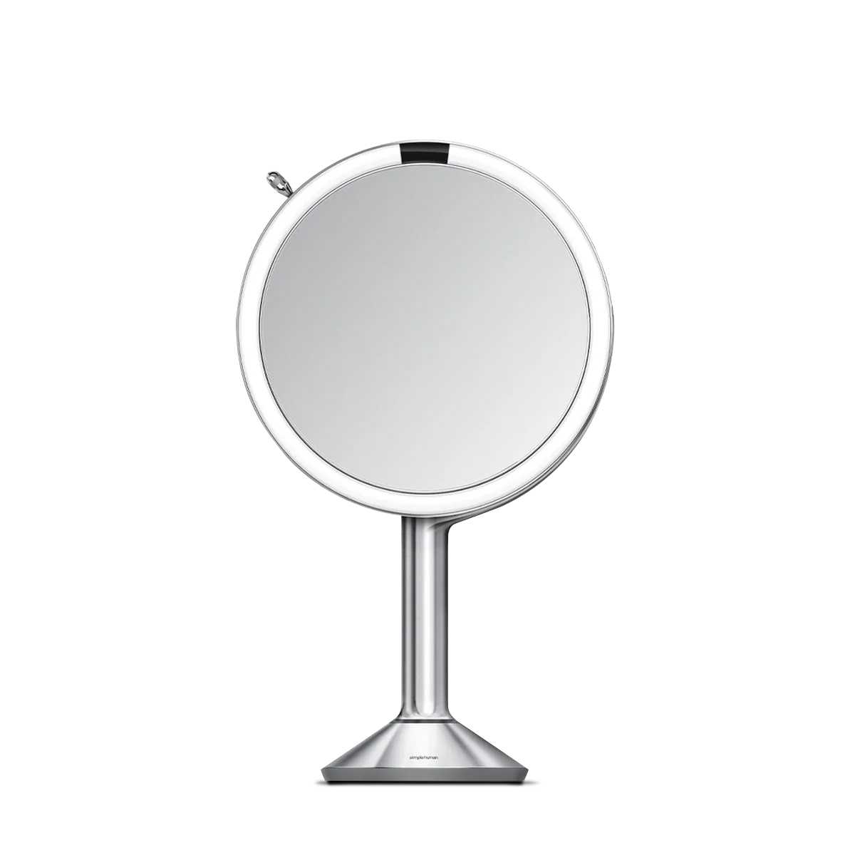 Discover the simplehuman Sensor Mirror Trio, your makeup companion. See your entire face with exceptional clarity and detail with the 5X magnification. The 1X side reflects true size, while the 10X window is perfect for precise tasks. TruLux lighting simulates natural sunlight, ensuring flawless makeup application. Motion-activated LED illumination turns on as you approach, and the cordless design offers up to five weeks of use on a single charge. Experience the convenience and precision of the simplehuman Sensor Mirror Trio.