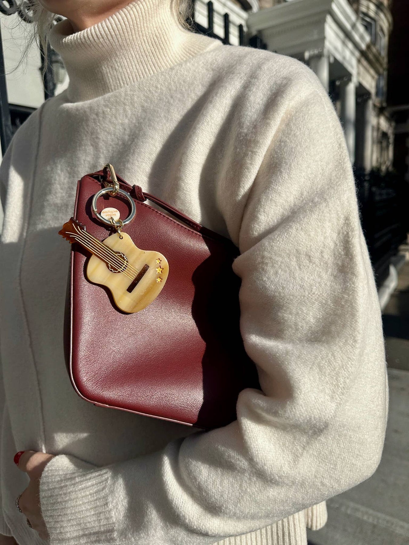 Turn up the style with the Solar Eclipse Guitar Bag Charm & Keychain. Designed for music lovers and free spirits, this miniature guitar charm features cosmic-inspired details that strike just the right chord. Clip it onto your tote, keys, or backpack for a playful pop of personality that’s out of this world.