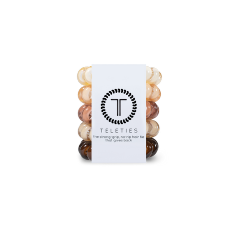 Small yet mighty, the tinyTELE boasts the same no-rip, strong-grip features you love and the fashionable styling you expect from TELETIES, now in smaller, tinier size. Perfect for little kids' hair, top knots, and the end of braids.